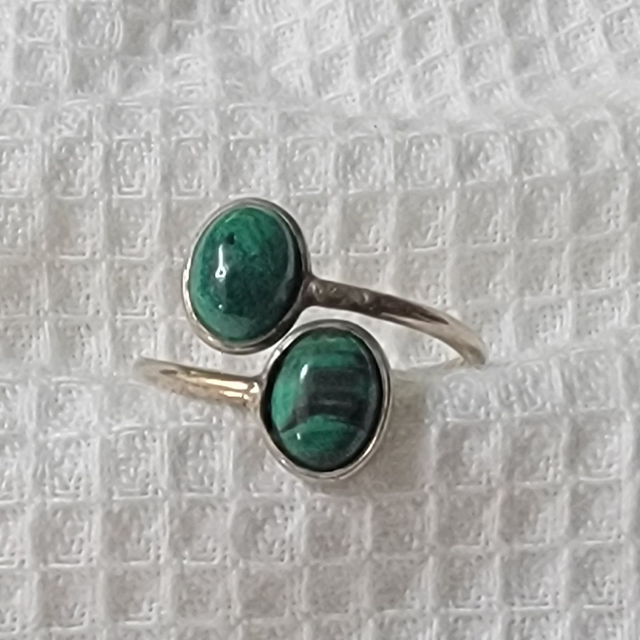Bague ajustable Malachite argent 925